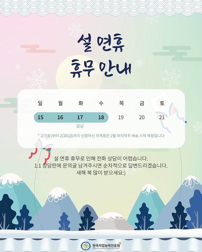 - 휴무일 : 2026년 2월 16일(월)~2월 18일(수)