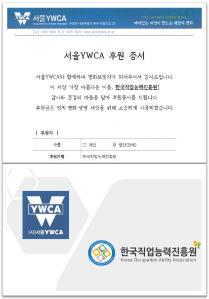 Home > 학습지원 > 공지사항 공지사항 여성과 함께 변화를 향해 나아가는 YWCA를 응원합니다. 등록일 2023-06-05 조회수 1660 한국직업능력진흥원 주식회사는 여성 인권과 복지를 위해 힘쓰는 서울 YWCA에 지속적인 기부를 통하여 깨어있는 여성이 만드는 세상의 변화에 동참하고 있습니다. 항상 여러분을 응원합니다. 목록